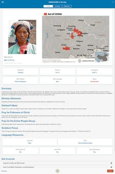 Get ResourceJoshua Project Unreached of the Day App